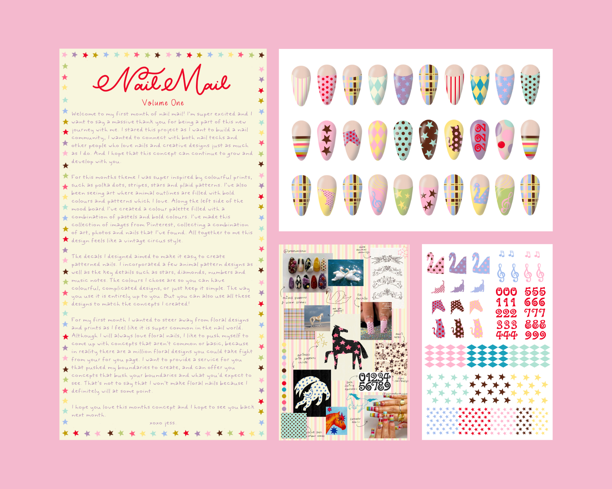 join my nail mail subscription service to receive monthly inspiration and nail decals delivered to your door. perfect if you’re a nail tech looking for inspo or a nail girly looking to save nail art costs when getting your nails done!
